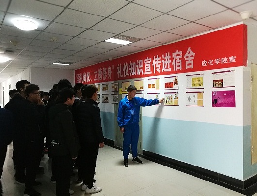 本次礼仪知识教育宣传共展出了24幅礼仪图片。图片包括礼仪漫谈、我国古代礼仪的起源、现代社会生活礼仪常规和结束语四大部分。其中现代社会生活礼仪常规详细的从仪容仪表、言谈举止、体态语言的使用、校园礼仪常规、家庭礼仪常规、待客礼仪、会面介绍礼仪、登门拜访礼仪、餐饮礼仪介绍等九个方面介绍了社会生活礼仪常规。简明而有重要作用的图片以及讲解员精彩的讲解吸引了众多同学的驻足观看。