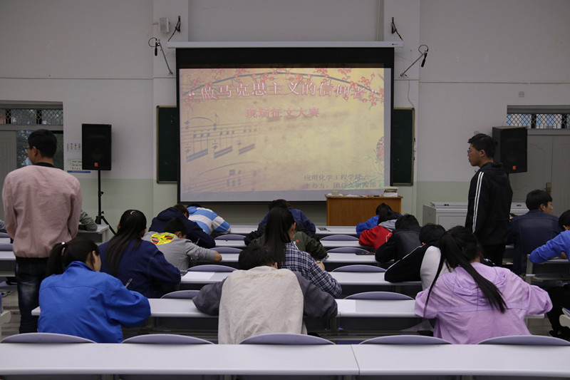 为了进一步检验学习成效,5月23日晚,应化公司团总支新闻部于西阶二教室举行以“做马克思主义的信仰者”为主题的现场写作比赛。参赛人员认真构思文章结构,仔细斟酌用词用句,寄自己真实的所思所想于笔端中,参赛选手们上交了令人满意的答卷。