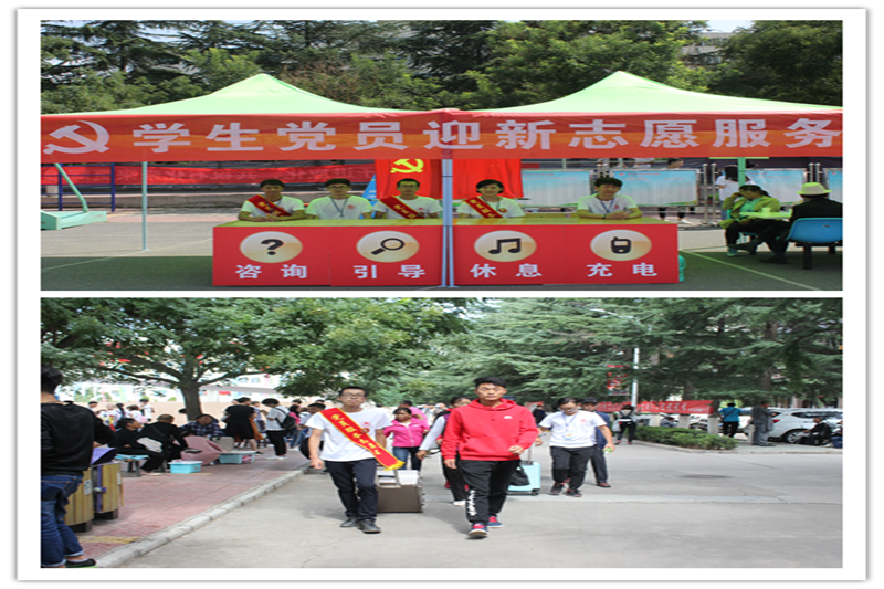 在繁忙的迎新现场中有这么一支队伍,他们统一佩戴着党徽、工作牌和绶带,用热情周到的服务向远道而来的新生及家长亮出“党员”这张响亮的名片,成为迎新舞台上一道亮丽的风景线。他们在员工宿舍楼、新生接待点为每一位新生带去真诚热心的服务。他们热情接过新生及家长手中的行李,对旅途劳累的新生和家长嘘寒问暖,积极帮助新生搬运行李,热心引导新生办理报到。在服务过程中他们还解答了新生想入党的一些问题,为新生答疑解惑。并在岗内设立咨询、引导、充电、休息四个区域,为新生提供更好的服务。党员模范带头作用得到更多诠释。