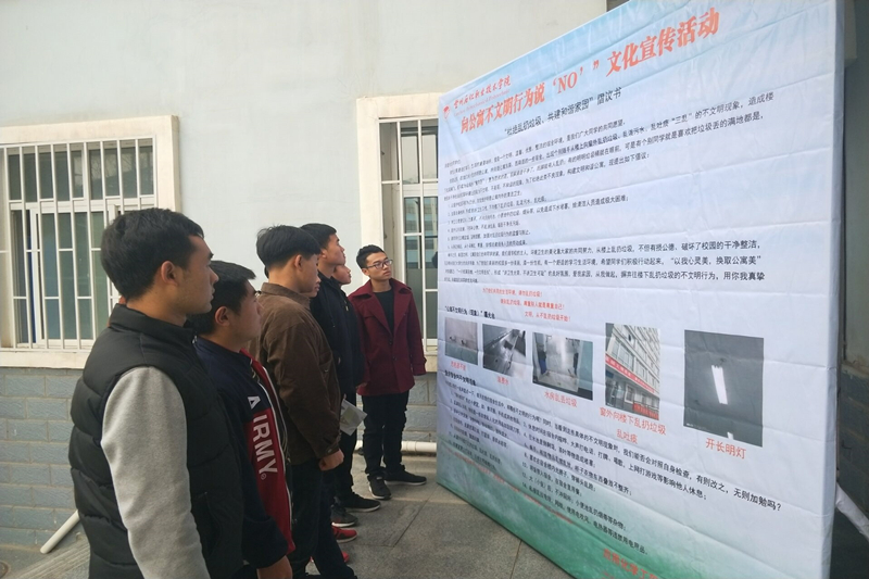 活动中,围绕员工在公寓中出现的吸烟、乱扔垃圾、乱泼水、随地乱吐痰等一些不文明的现象,加大专项治理力度。一是充分利用员工早操集合队前教育、召开主题班会、班级QQ群、公寓板报、宣传横幅等平台,广泛开展宣传教育引导,帮助员工树立卫生文明观念,增强公德心意识,提高员工的自觉行为;二是向同学们发出“杜绝乱扔垃圾、共建和谐公寓”倡议书,让更多的同学了解、关注这次活动;三是开展“公寓不文明行为(现象)随手拍”征集展示活动,让更多的同学了解、关注这次活动;四是“盘点公寓不文明现象”,使大家相互监督,相互纠正,对不文明行为进行劝导,形成人人讲文明,营造“讲文明、讲公德、讲卫生”的良好习惯;五是开展“拒绝乱扔垃圾”志愿者文明督查活动。由辅导员带领员工会干部作为“监督员”,每天在公寓内外,采取值班巡查、蹲点守候、追查处理等方式,对个别不文明行为进行检查督察,发现问题,及时教育严肃处理,营造从严管教氛围。
