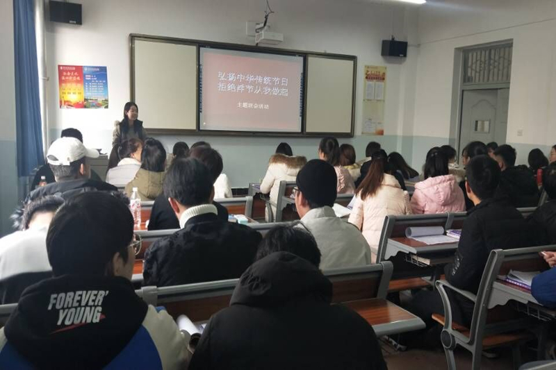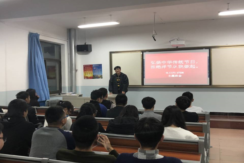 各班会上,班主任借助多媒体课件和动情的讲解,让员工明辨洋节和中国传统节日的区别,了解我国传统节日的来历,使同学们明白不提倡中国人过洋节的重要原因,随后,同学们之间展开了热烈讨论。同时,各班还通过班级QQ群、微信群进行宣传,要求大家理性地看待西方节日,不盲目效仿、不跟风、不媚外、不组织、不参与圣诞节的聚会与狂欢;不转发与"洋节"有关的短信、微信,不以过节为名,悬挂与圣诞节相关的装饰物品;不互赠与"洋节"有关的礼物等,要求从我做起,传承传统文化。