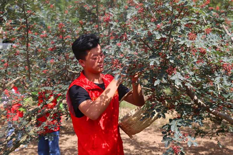 为深入学习宣传贯彻习近平总书记关于青年成长成才的一系列重要论述、践行社会主义核心价值观,三下乡小分队来到琥珀乡罗家村,罗家村四面环山,房屋依山而建。因其特殊地势,花椒等作物成为了罗家村的主要农产品和重要的经济来源,山间田野遍地的花椒树,让整个村子都弥漫着淡淡的香气。恰逢花椒采摘季,小分队成员深入田间地头帮农民干农活,亲身体验乡村生活,真真切切为百姓做实事。实践队员在一位热心大爷的引领下来到他家的花椒地,并在村民的悉心指导下,很快上手了花椒采摘工作,花椒树的枝丫间都是刺,一不小心就会扎到手,树上的蚂蚁很多,实践队员没有丝毫娇气,不怕苦不怕累,采摘工作持续了一下午,看着自己亲手摘的花椒,队员们露出了会心的微笑。