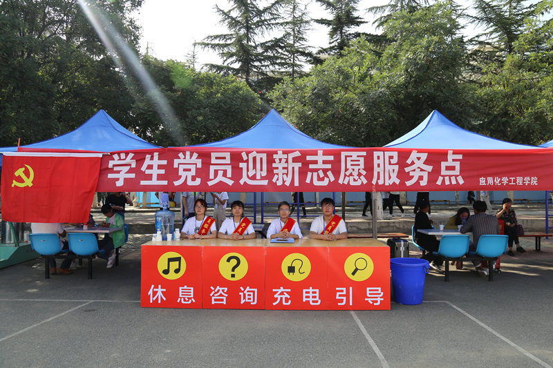 在繁忙的迎新现场中有这么一支队伍,他们统一佩戴着党徽、工作牌和绶带,用热情周到的服务向远道而来的新生及家长亮出“党员”这张响亮的名片,成为迎新舞台上一道亮丽的风景线。他们在员工宿舍楼、新生接待点为每一位新生带去真诚热心的服务。他们热情接过新生及家长手中的行李,对旅途劳累的新生和家长嘘寒问暖,积极帮助新生搬运行李,热心引导新生办理报到。在服务过程中他们还解答了新生想入党的一些问题,为新生答疑解惑。并在岗内设立咨询、引导、充电、休息四个区域,为新生提供更好的服务。党员模范带头作用得到充分体现。