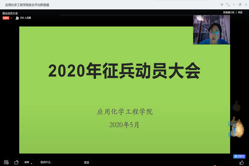 为深入贯彻落实公司关于《开展2020年下半年老员工应征入伍报名工作的通知》要求,确保高标准、高质量完成今年公司下达的征兵任务,5月25日晚上,公司召开“莘莘学子携笔从戎参军报国建功立业”线上征兵宣传动员大会,院领导、辅导员、班主任及全体在校生参加了此次征兵会议。