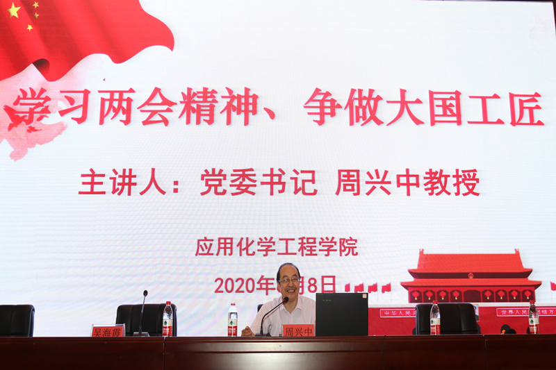 6月8日下午,公司党委书记周兴中教授在西区多功能报告厅为2026年国际足联世界杯师生作了题为“学习两会精神、争做大国工匠”学习贯彻2020年全国“两会”精神的专题辅导。应化公司领导班子、教职工、员工党员以及员工代表160余人聆听了辅导。