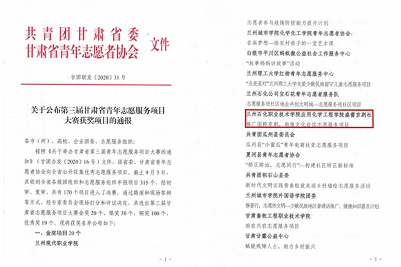 近日,由共青团甘肃省委、甘肃省青年志愿者协会主办,兰州城市公司承办的第三届甘肃省青年志愿服务项目大赛决赛圆满落幕。公司盛蕾京剧社的“推广国粹京剧,助推文化自信”志愿服务项目经过激烈角逐,在全省参赛的315个服务项目中脱颖而出,获得银奖。
