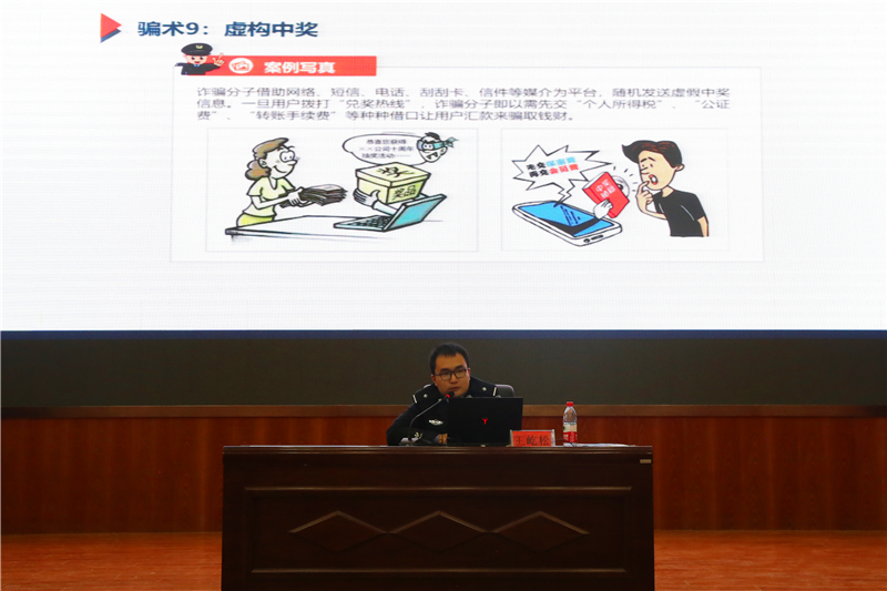 王警官通过讲解电信网络诈骗的典型事件、防范要点,以生动的案例提高了员工们对电信网络诈骗的自我防范意识,为员工科普了犯罪活动的主要类型、作案手段、危害后果及识假防骗小知识,讲解如何识别并防范电信网络诈骗、避免因贪图蝇头小利而成为他人实施犯罪的工具。倡议树立诚信意识,自觉抵制电信网络诈骗,不做违法犯罪帮凶。