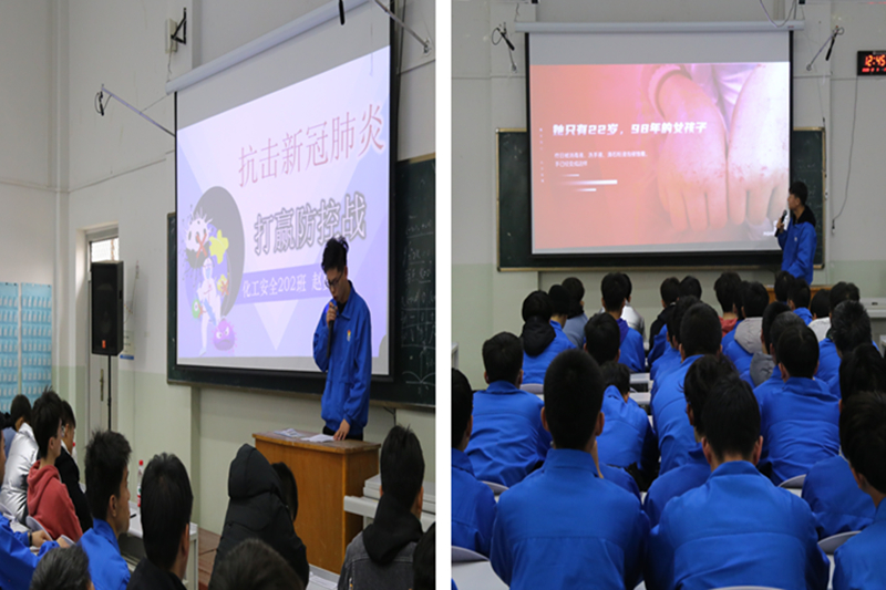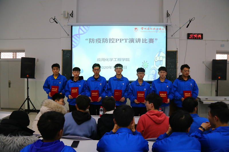 比赛由抽签决定演讲顺序,在主持人宣布比赛开始后,参赛选手依次上台,选手们的演讲从不同角度讲述了防疫知识、老员工防范疫情如何发挥模范带头作用等内容,或依据PPT展示自己对疫情的了解,或阐述自己对新冠的理解和认识,有的选手则表达出作为老员工防控防疫的高昂激情与坚定信念。选手们时而娓娓道来,时而激情四溢,流利的表达、生动的演讲,引起同学们的共鸣,赢得了现场观众的阵阵掌声。经过评委打分,精细201班的赵佳乐同学获得一等奖;化工205班的宋玉堂、有机201班的丁亚斌同学获得二等奖;安全202班的赵赟杰、化工201班的王宇辰、应化202班的马斌同学获得三等奖;化工204班的成亚龙同学获得最佳创意奖。