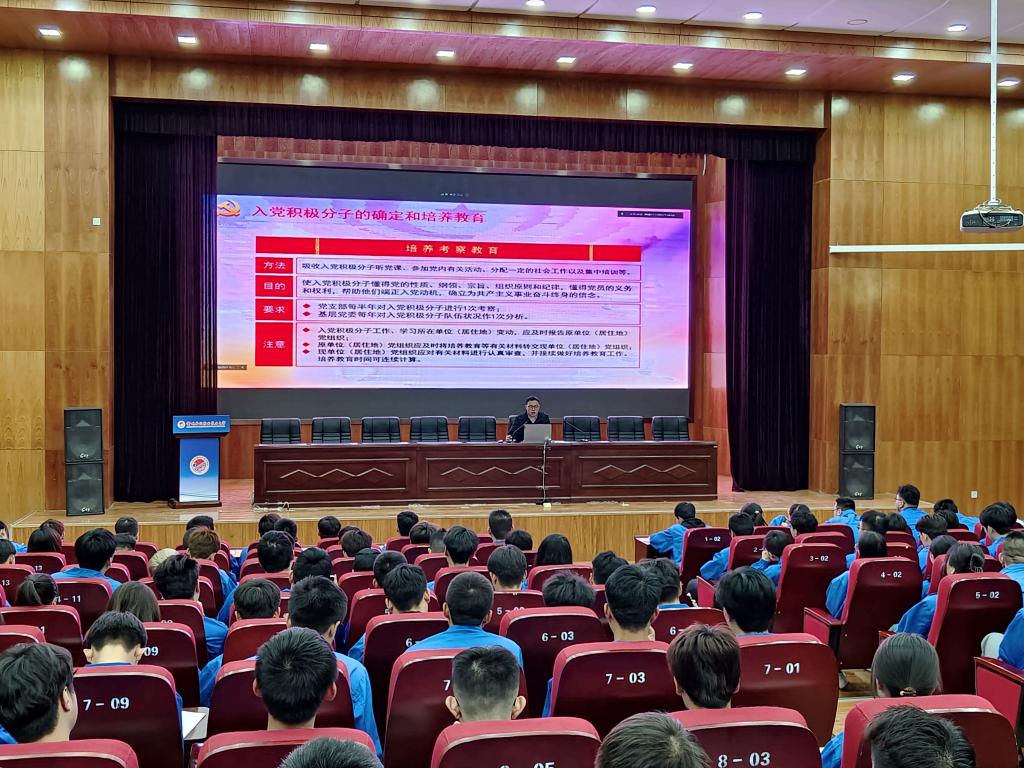 开班仪式结束后,唐靖为此次培训班的学员上了第一堂党课——《加入中国共产党的标准、条件和程序》,他深入浅出地讲解了入党的基本条件和程序等内容。他强调指出,中国共产党的初心是“为人民谋幸福,为民族谋复兴”,全体入党积极分子要树立“未进党的门,先做党的人;组织上入党一身一次,思想上入党一生一世”思想,以服务人民为宗旨,时刻要按照共产党的标准严格要求自己,努力做同学之中的标杆,发挥先锋模范和表率引领作用。他还期盼同学们通过党课的学习,不断端正入党动机、提升党性修养,深化对党的认识和理解,积极主动向党组织靠拢,争取早日加入中国共产党,为党和国家的事业、为人民的幸福贡献青春力量。