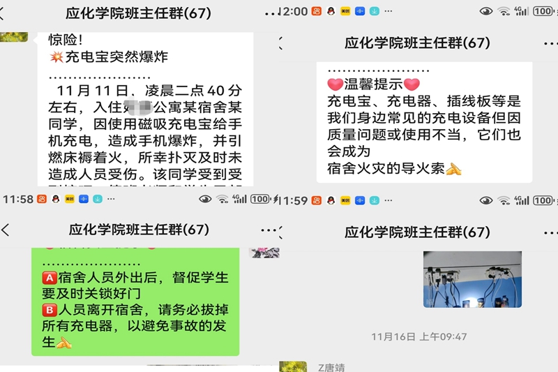 二是紧抓落实,安全教育。充分利用微信、QQ、安全主题班会,及时通报消防安全存在的问题,进行消防安全提示,开展预防火灾、火灾发生后如何报警、如何扑救初期火灾、如何逃生等为内容的安全教育活动,切实提高师生们的安全防范意识。