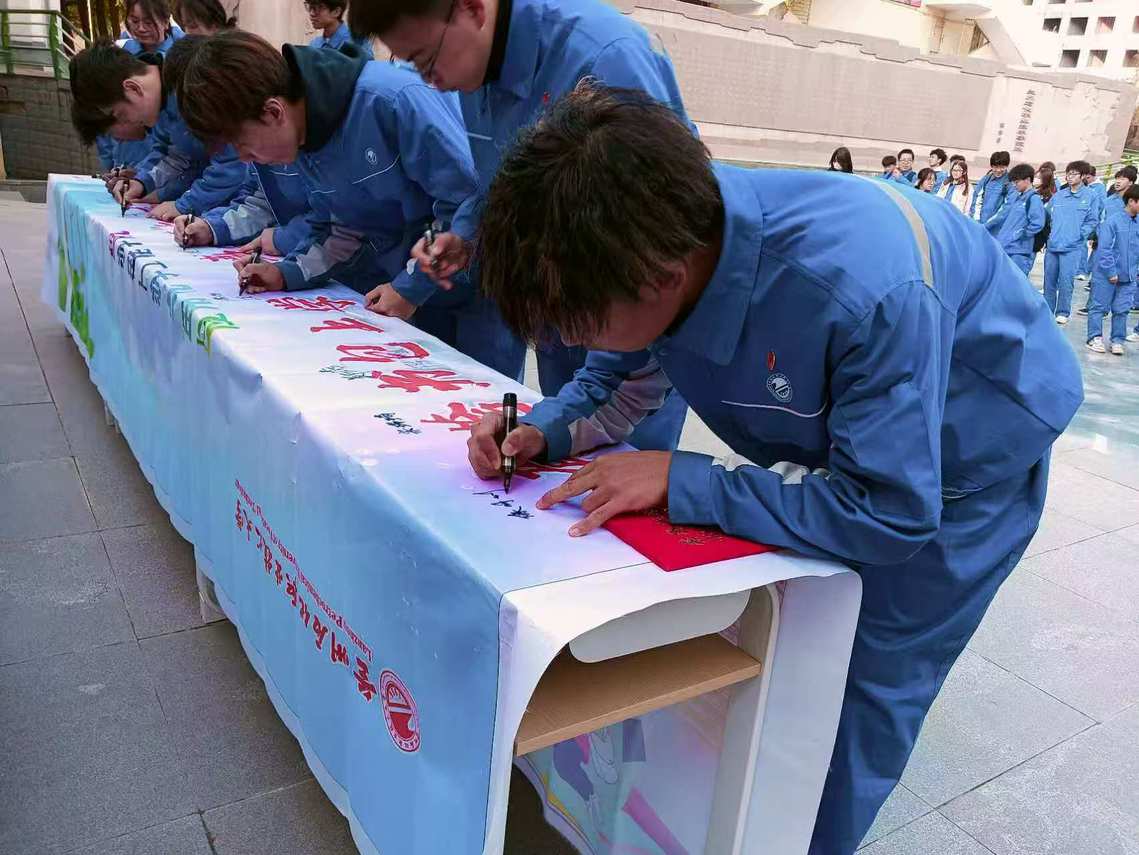 随后,活动进入庄重而热烈的签名仪式环节。同学们纷纷有序走上前,在印着活动主题的宣传布上郑重签下自己的姓名。笔尖落下的不仅是一个个名字,更是对“背着书包上学”理念的由衷认同与坚定支持,是一份对勤学笃行的自我承诺,以此进一步督促自己在今后的学习道路上,始终怀揣初心、脚踏实地,将这一理念融入日常学习