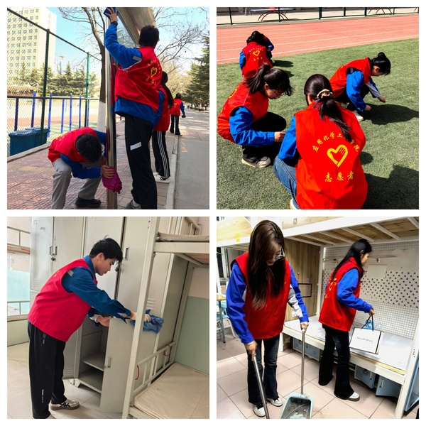 活动当天,春意初显。同学们手持扫帚、抹布、垃圾袋等工具,以饱满的热情投入劳动。大家分工明确,相互协作,重点对校园展板、道路两侧以及宿舍楼后墙的卫生死角进行了彻底清理,捡拾散落垃圾、落叶;在员工宿舍楼内,志愿者们认真擦拭楼梯扶手、清洁宿舍卫生死角,并对部分公共洗漱区域进行了水渍清理与消毒,为迎接此次宿舍大调整搬迁做准备。经过大家的辛勤劳动,相关区域的卫生环境得到了明显改善,面貌焕然一新。
