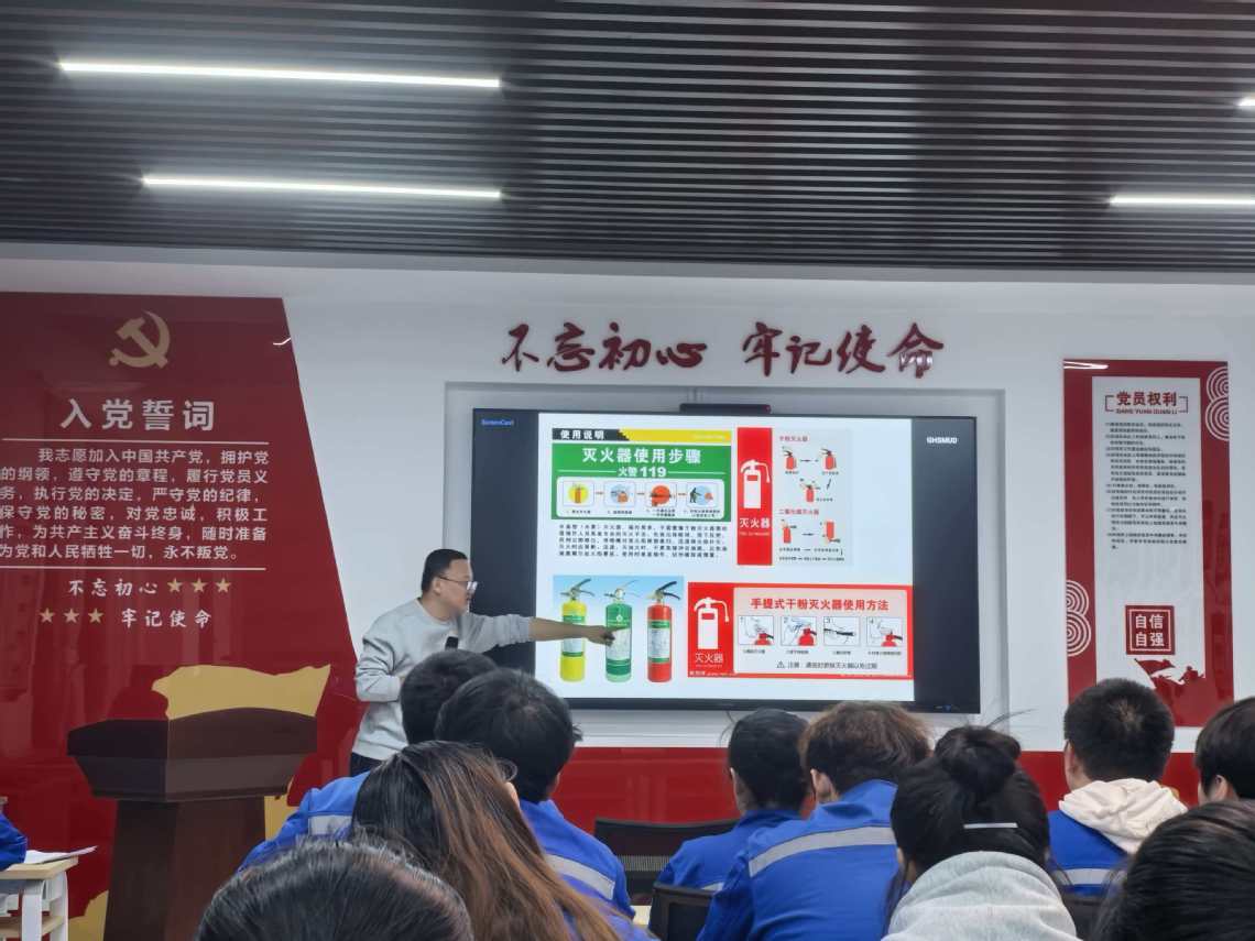 培训会上,主讲人首先结合近年来高校发生的实验室爆炸、化学品泄漏等典型事故案例,深入剖析违规操作、防护缺失等关键风险因素,以真实惨痛的事故教训警示员工严守安全底线。随后,围绕化工实验室核心安全要求,系统讲解危险化学品分类存放、“五双”管理制度、废液规范处置等内容,并对易燃试剂使用、高压气瓶操作等高频风险场景的操作规程进行详细解读,帮助员工全面理解规范操作的必要性与执行要点。在应急处置培训环节,主讲人结合实际案例,详细介绍了灭火器使用、化学灼伤冲洗、气体泄漏隔离等常用应急技能,并自编“防护装备必穿戴,试剂标签细核查”等简明口诀,帮助员工快速掌握安全要点。